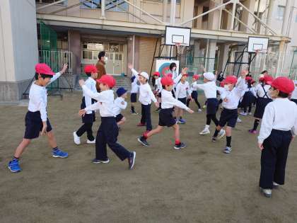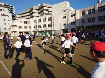1年生はからだじゃんけん、2年生はふうせんバレー、3年生は歩きおにごっこで楽しみました。