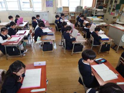【2組】入学式で1年生を迎える歓迎の言葉の練習をしました。