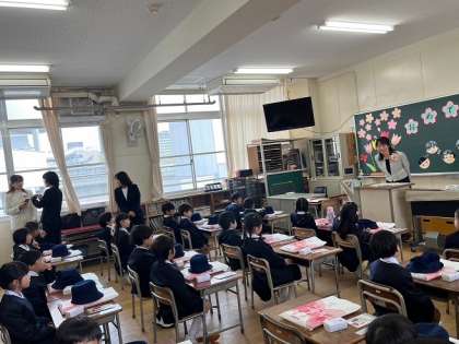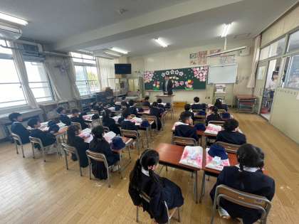 入学式が終わって、教室で担任の先生からお話を聞きました。
