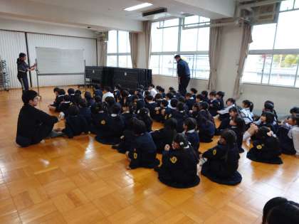 1年生を迎える会が、明日に延期になったので、あいさつの練習をしました。