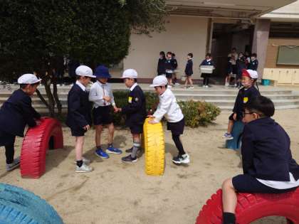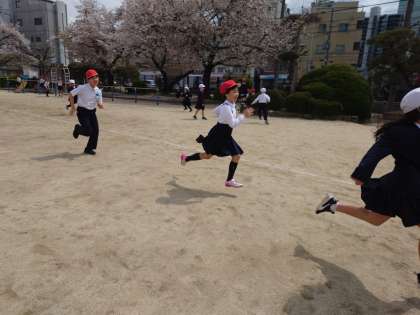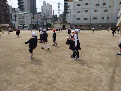 昼休みにはたくさんの子が運動場で遊んでいます。
