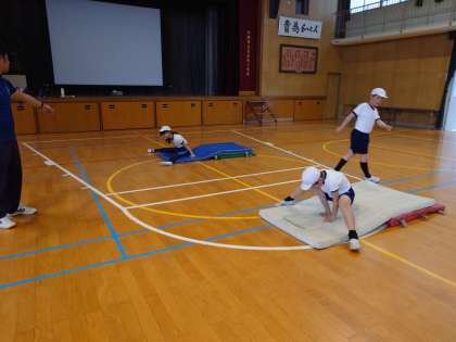 体育科で、マット運動の学習をしました。