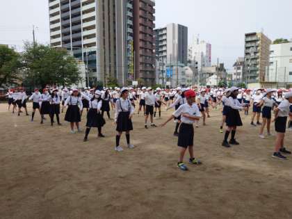 1年生も、運動委員会の人の動きをまねして上手にできました。