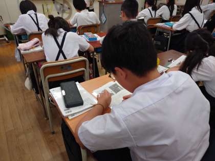先生の出す楽しい問題に答えた後は、自分でも問題作りにチャレンジしました。