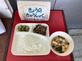 スタミナがつきそうな給食です。4連休しっかりと遊ぶためにしっかり食べます。