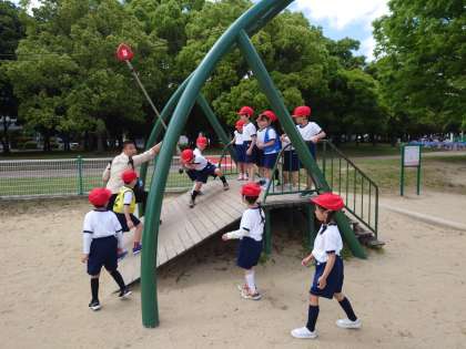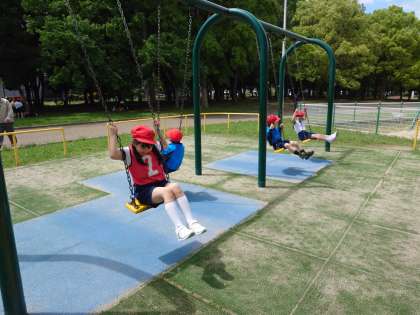班に分かれて、色々な遊具で、仲良く遊びました。