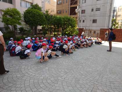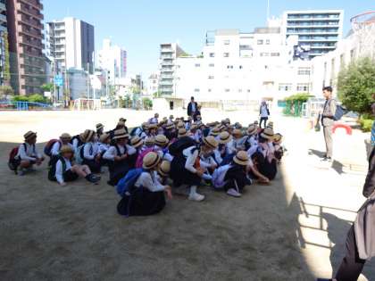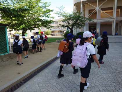 3年生と4年生が、目的地に向かって元気に出発しました。