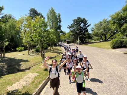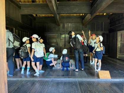 午前中は、公園内にある日本民家集落博物館で、日本の家屋について学習しました。