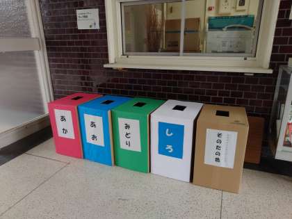 そこでキャップを集めるために、正門の玄関に、回収ボックスを設置しました。