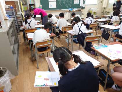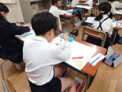 最初に習った絵具の使い方を思い出しながら、ていねいに塗りました。