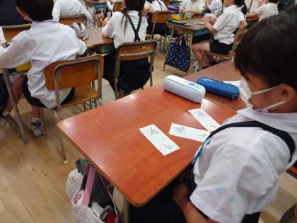 みんなは、係の報告を聞いて、頑張ったと思った係に出資します。