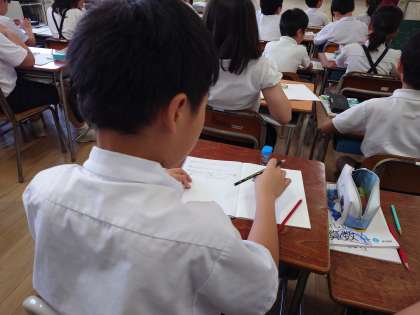 分度器の当て方と目盛りの読み方を習って、実際に測ってみました。