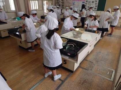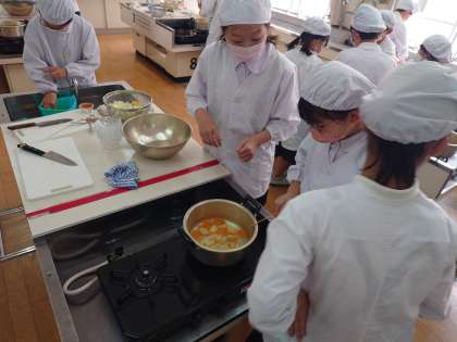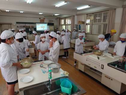 家庭科の調理実習で、野菜サラダを作りました。