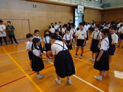 今日の児童集会のゲームは「ゴロゴロ ドカン!」です。