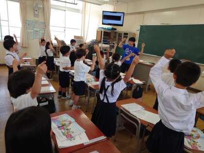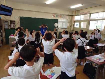 ♪つのだせ やりだせ あたまだせ〜 の部分を体を使って表現しながら歌いました。