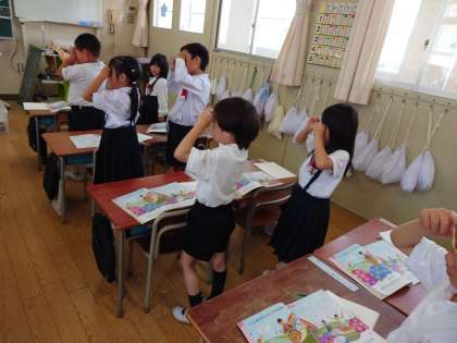 音楽の時間に、「かたつむり」の歌を歌いました。