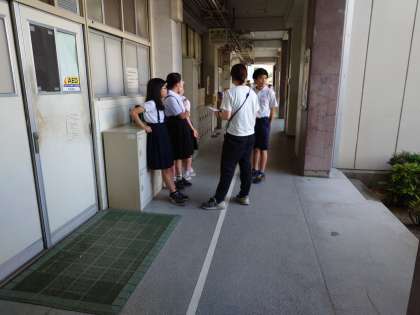 児童会の人は、あいさつ運動が終わると集まって、今日のあいさつをふり返ります。