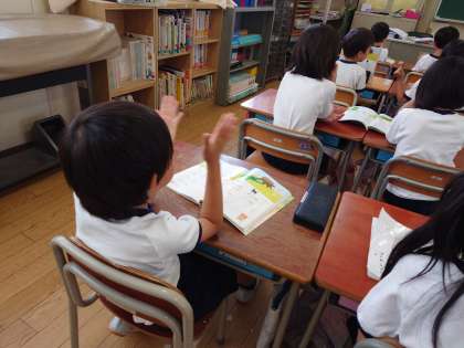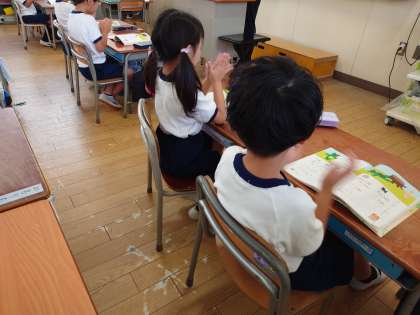 手拍子を打って、リズムの違いを感じながら上手に音読していました。