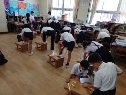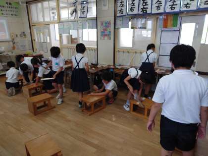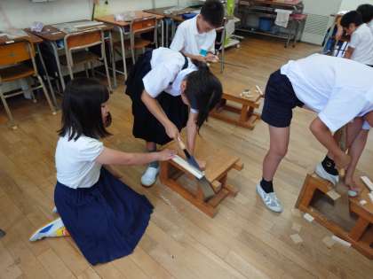まだまだ角度や力の入れ加減がわからず苦労していましたが、ほとんどの子が目的の大きさに木材を切ることができました。