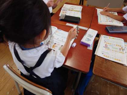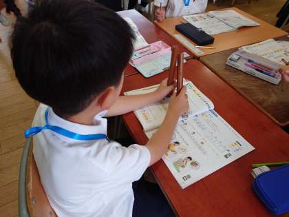 できたリズムは、友だちと聞き合いっこをしながら楽しく演奏しました。