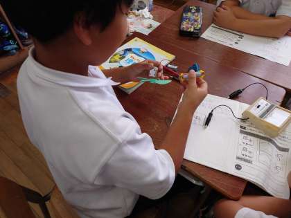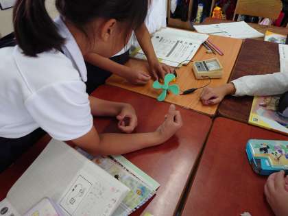 プロペラが回ると電流計の針もふれるので、回路の仕組みがよくわかったようです。