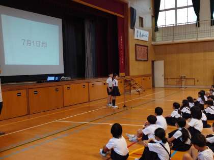 また、児童会からは今週行う「あいさつ週間」の呼びかけがありました。