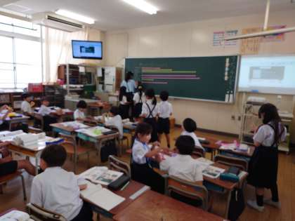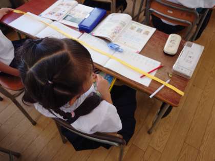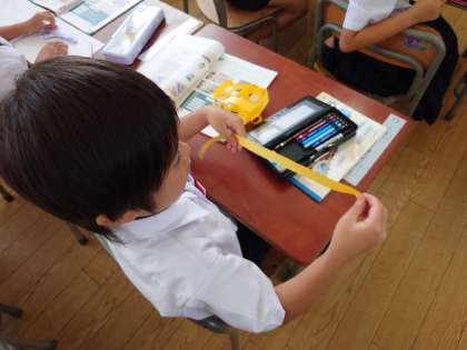 算数科の時間に、いろいろなものの長さを測って比べました。