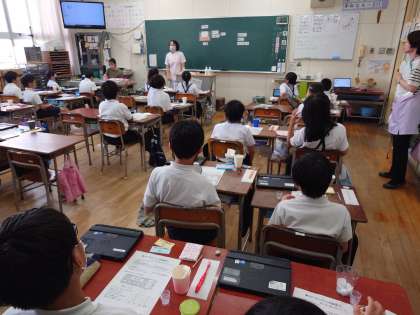 4年生は、歯磨き指導に加えて、フッ化物洗口をしました。