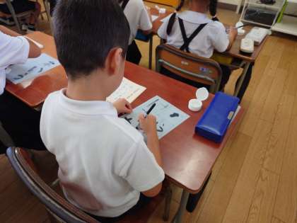 自分の名前を書いたり、好きな言葉を書いたりして、楽しく学習しました。