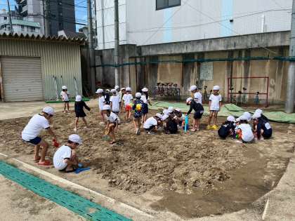 水鉄砲で遊んだり、泥んこ遊びをしたりと、みんなで楽しく活動しました。