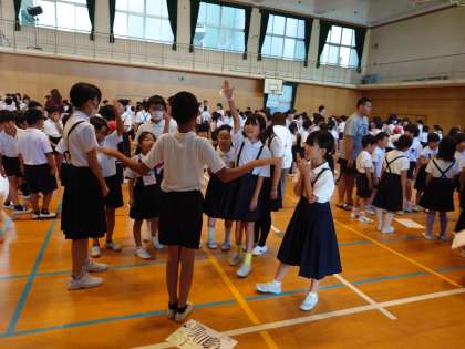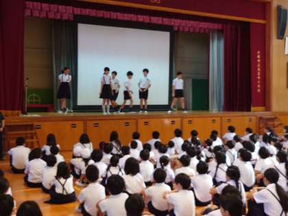 班長がする面白い動きで、あちらこちらから笑い声が起きていました。