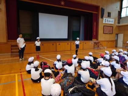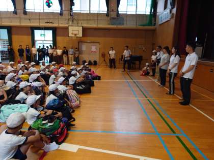 講堂で出発式をしました。