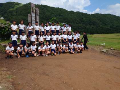 学級ごとに、高原のモニュメント前で写真を撮りました。