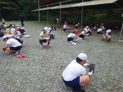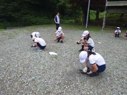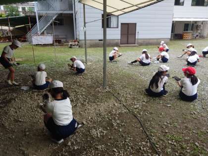 焼けた板のすすをたわしとタオルでこすり取ります。