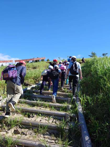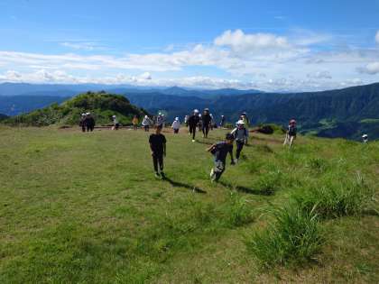 山頂ではトンボがたくさん飛んでいるので、手乗りトンボに挑戦です。