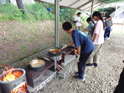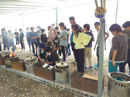 具材の入った鍋が準備できたら、ファイヤーイン!