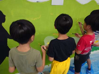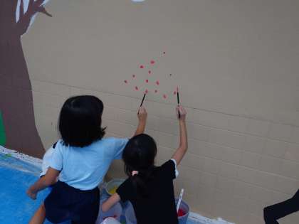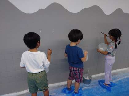 初めてペンキを塗るのは難しそうでしたが、ペタペタと楽しそうに塗っていました。