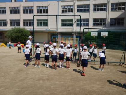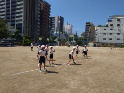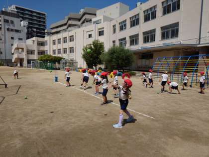 紅白玉の次は、スポンジボールを使って、相手コートに投げ入れます。