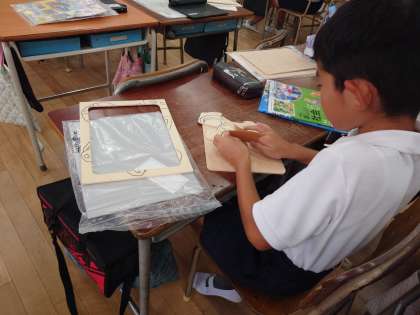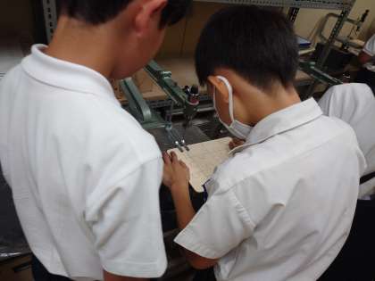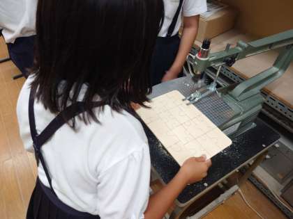 図画工作科で、電動糸のこぎり機を使って、パズルのピースを作りました。