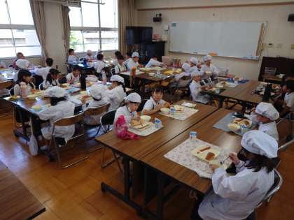 エアコンが故障中なので、給食も教室以外で食べなくてはいけません。