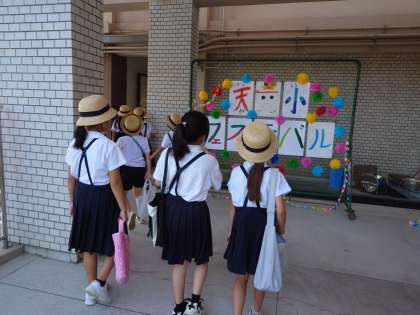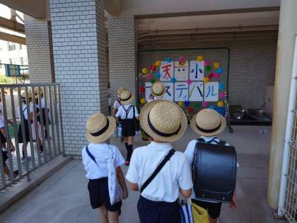 学級の仲間と協力して作ったお店を、たて割り班のみんなで回って遊びます。