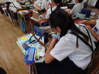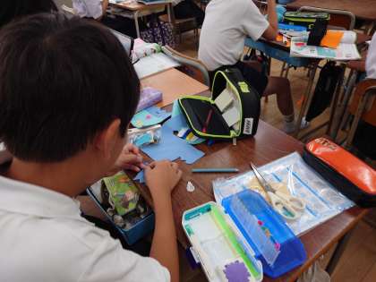 家庭科の学習で、フェルトを使った手縫いの作品を作りました。