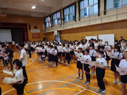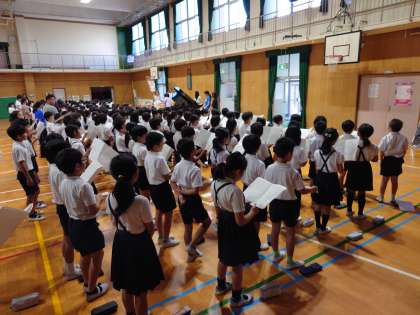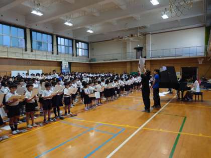 創立150周年の式典で全校合唱する「ぼくらのチカラ」の練習をしました。