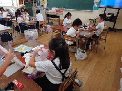 色を塗ったり、いろんなものを貼ったりして、楽しいおもちゃを作ることができました。