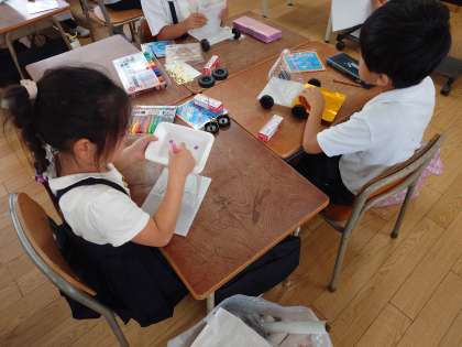 生活科の時間に風の力を使って走るおもちゃを作りました。