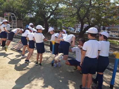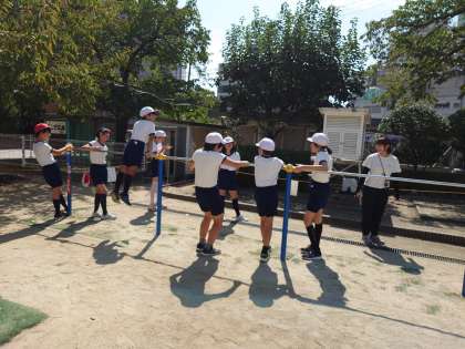 体育の学習で、器械運動の鉄棒運動に取り組みました。