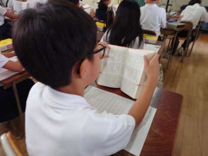 物語教材の学習をするにあたって、国語辞典を使って、意味調べをしました。
