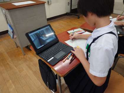 作品展に向けて、遠近法を使った絵画の描き方を練習しました。