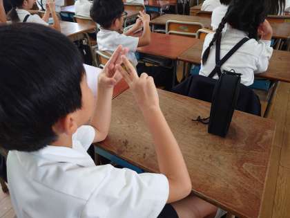 手話の言葉には、動作の中に意味が隠れているものが多いので、クイズ形式で楽しく学習しました。