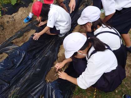 今日は、3年生がかぶらの種を植えました。